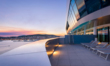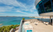 As daylight fades, Aria Bar becomes the place to be. The sky shifts through warm tones of orange and pink, the sea reflects the glow, and the whole scene feels effortlessly cinematic.