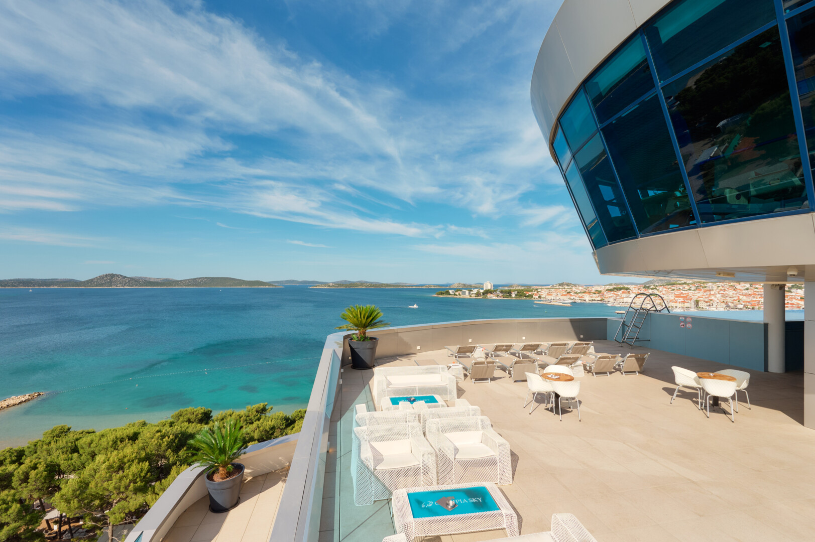 Aria Bar is situated on the top of Olympia Sky hotel, nine floors above. This space was created for pure hedonism — for enjoying the breathtaking view of the Vodice archipelago and sipping expertly crafted cocktails. If you want to experience the true Mediterranean atmosphere, filled with calm and completely free of worries, this is the place for you.